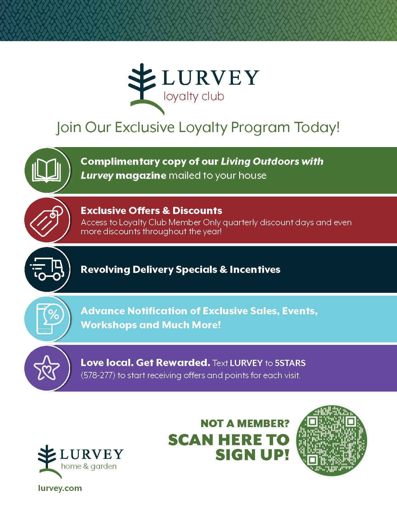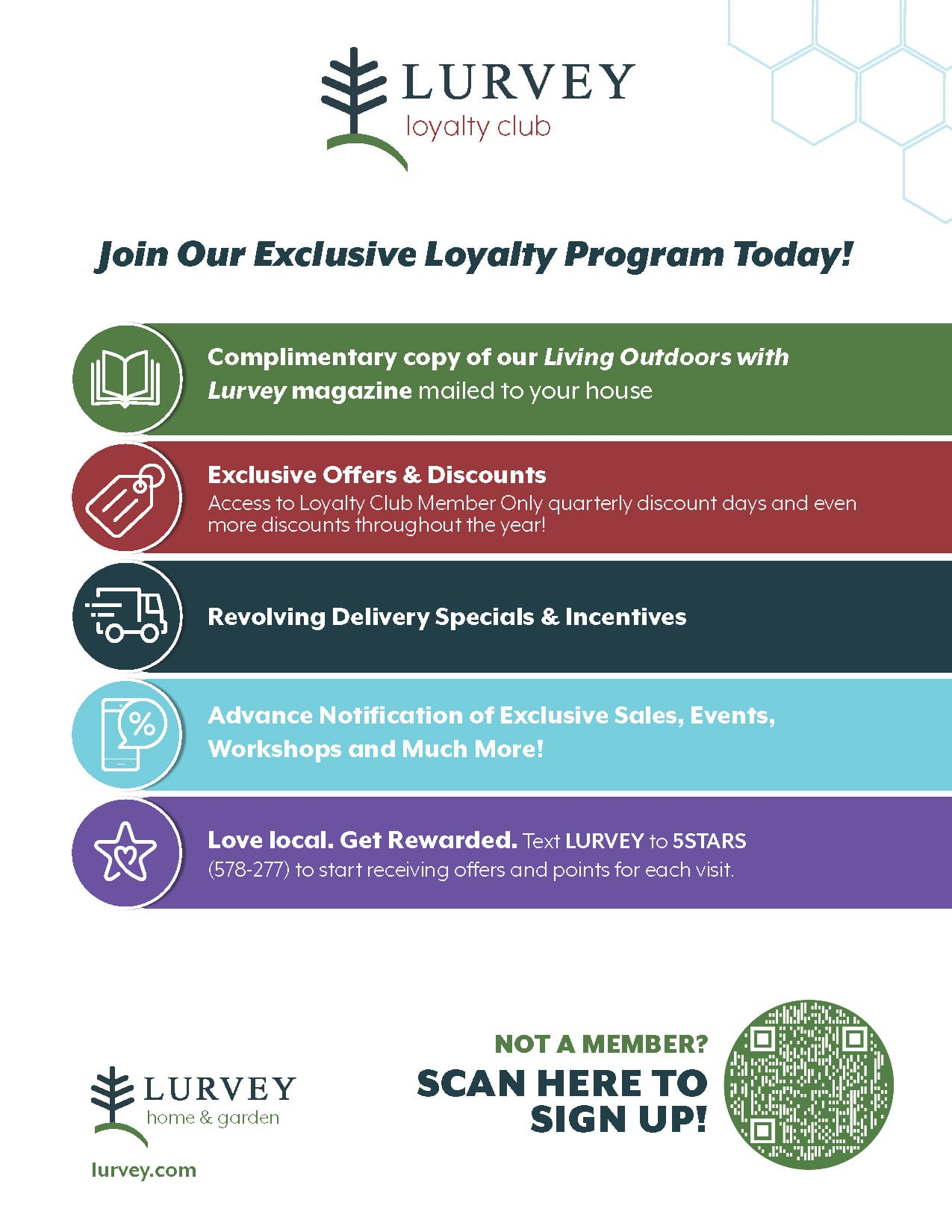 Start earning savings that grow with your garden. From our Living Outdoors with Lurvey magazine to exclusive member discounts, our loyalty program can’t be beaten.