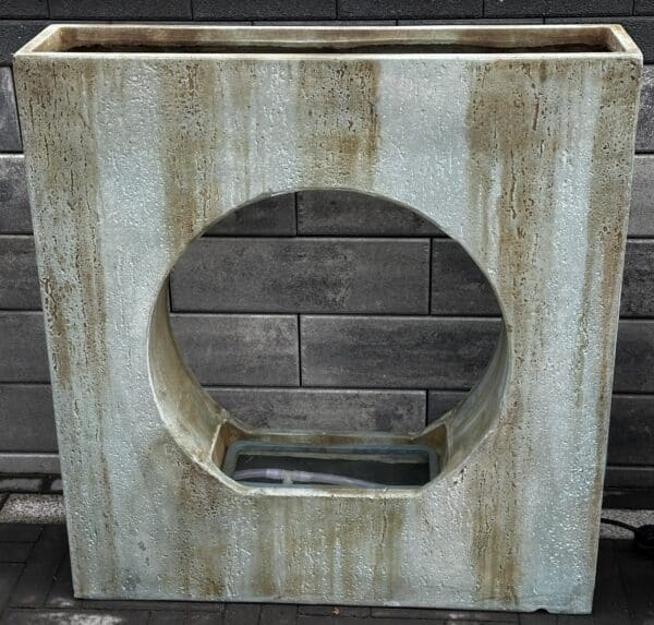 Crafted from cast cement and fiberglass, this fountain features a simple design that mimics a rain shower. Water flows gracefully from the top, cascading down in a serene, rhythmic pattern, creating a peaceful ambiance for gardens, patios, or outdoor spaces. The construction ensures long-lasting beauty, while its antique-inspired finish gives it a timeless, rustic charm.
