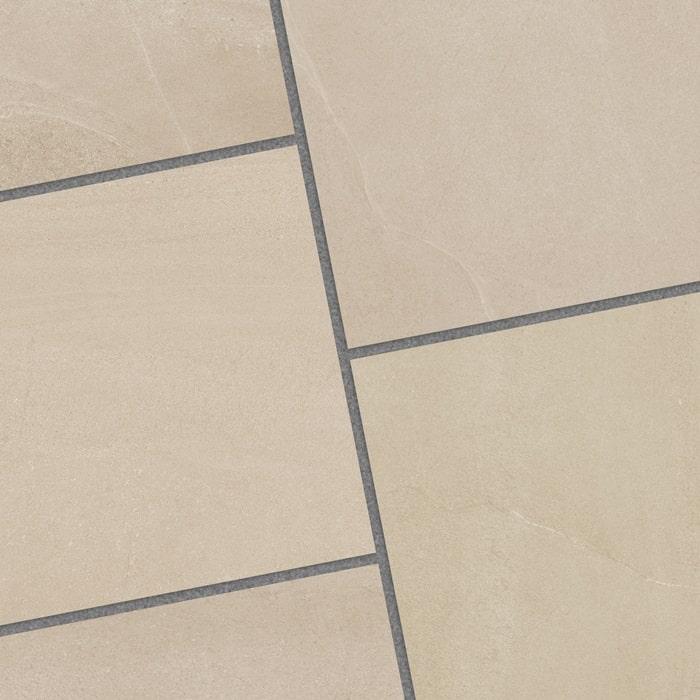 Smooth, 1cm porcelain tile bonded to a concrete paver base