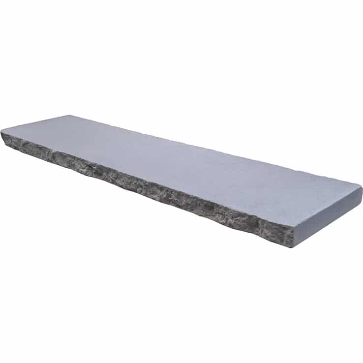 An attractive wall accent or stair tread, rock-faced on front and back, with a lightly surfaced top and a wear-proof surface.