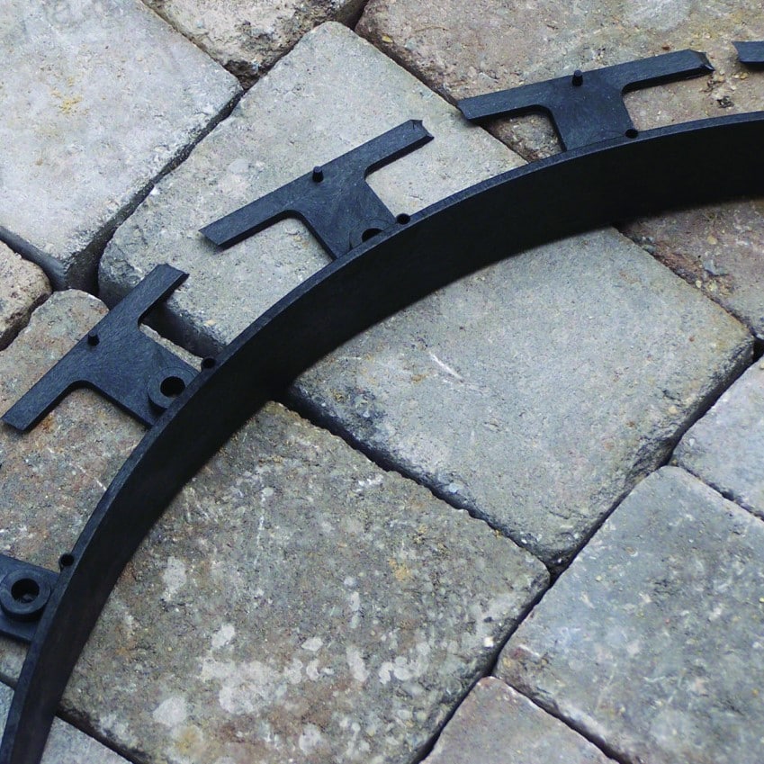 Open base design allows for grass growth along paver edge creating a strong yet invisible edge.