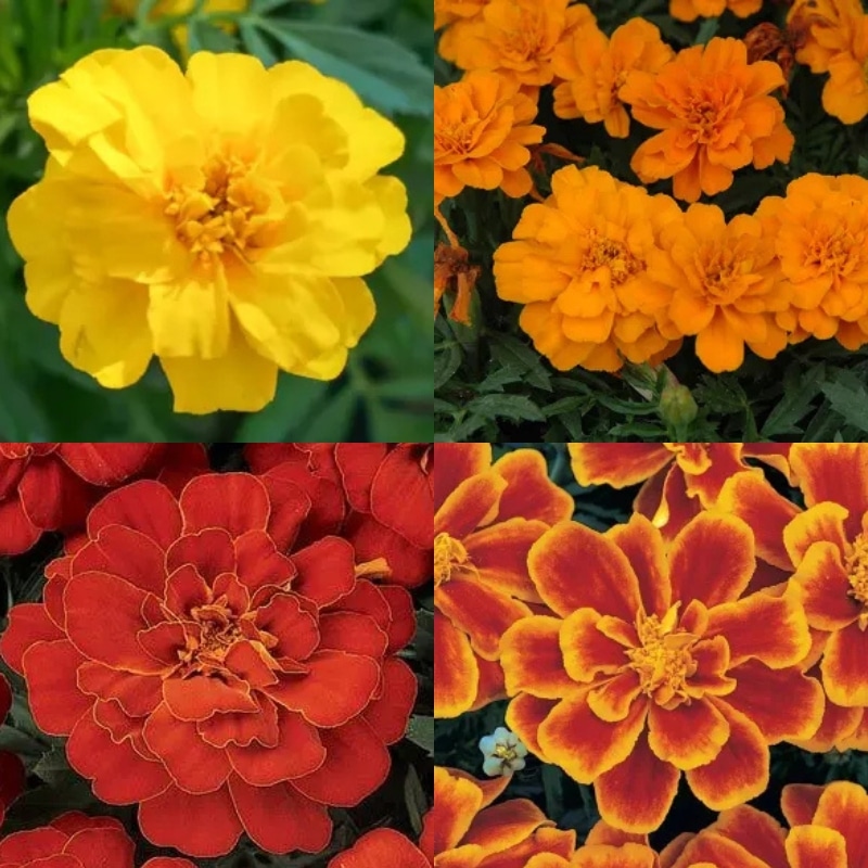 Bright and cheerful, French Marigolds add reliable color and texture to sunny garden spaces. Known for their compact habit and abundant blooms, these heat-tolerant annuals thrive in full sun and are perfect for beds, borders, containers, and landscape plantings. With their rich mixes of gold, orange, and red tones, French Marigolds provide long-lasting summer color, natural pest-resistance, and easy, low-maintenance performance.