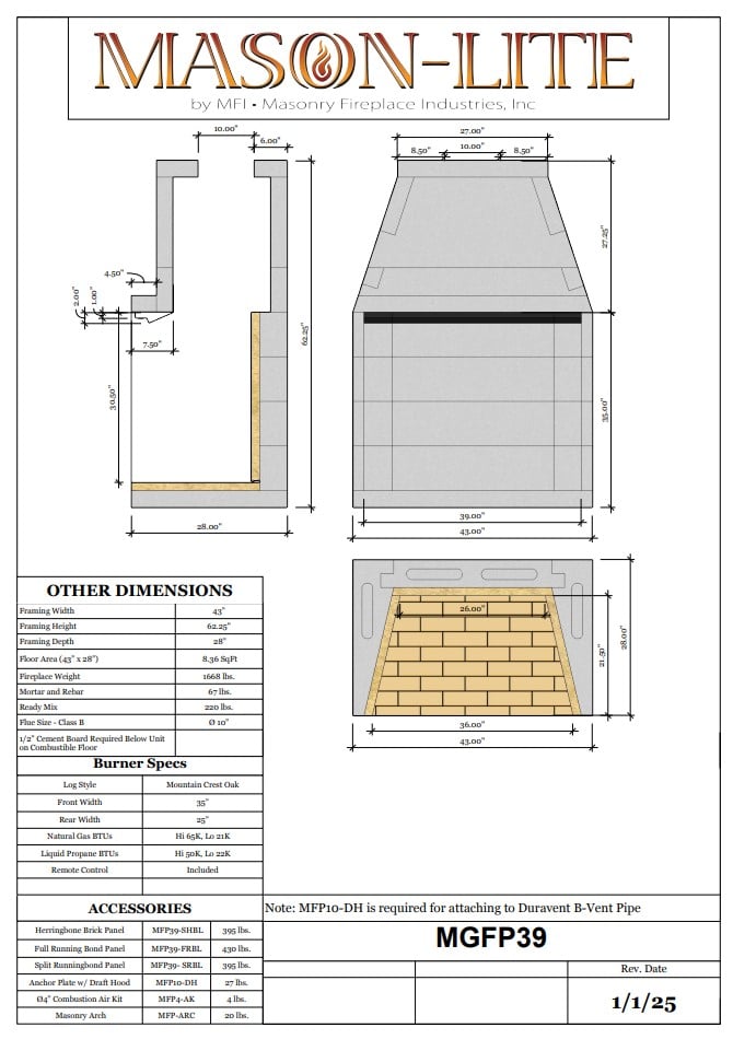 Mason Lite 10″ B-Vent Gas Appliance w/ logs 39″