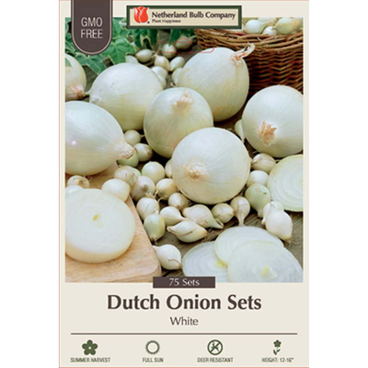 White Dutch Onion Sets offer a clean, crisp appearance and a sharp, zesty flavor prized for fresh salsas. These easy-to-grow bulbs produce firm, pure white onions that mature reliably for a pungent and crunchy addition to dishes.