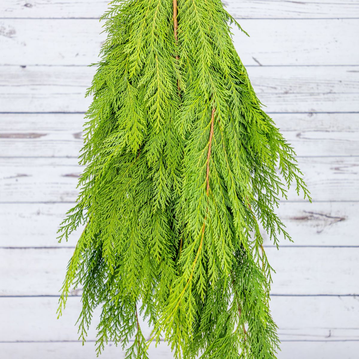 Fresh from the Pacific Northwest, these flat sprays of feathery foliage look delicate, but are actually versatile and perfect for draping in garlands, porch pots, wreaths and arrangements.