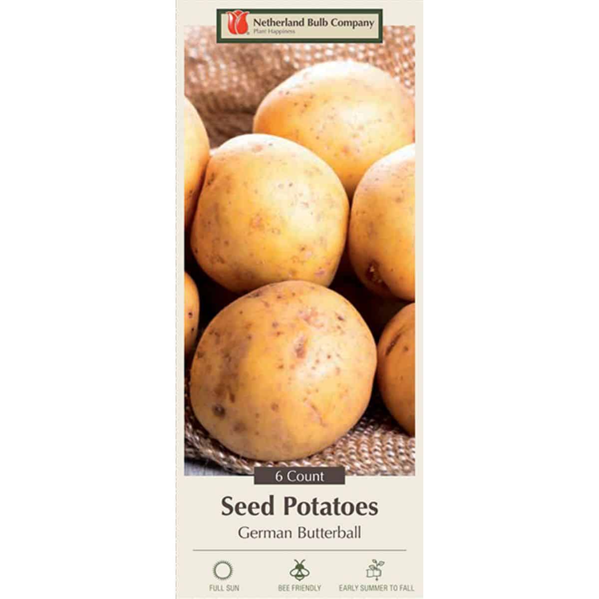 Potato ‘German Butterball’ is an award-winning heirloom celebrated for its golden skin and deep yellow, buttery flesh. It is widely considered one of the best-tasting potatoes for roasting, mashing, or steaming.