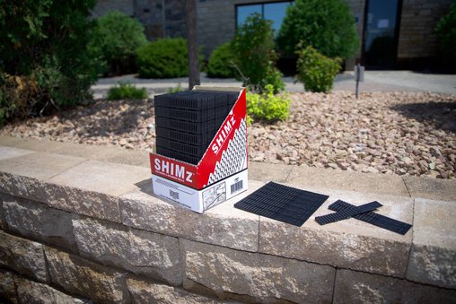 Shimz recommended for use with pavers, retaining walls, caps, steps, masonry and outdoor architecture. 4x stronger than wood. Snap clean at pre-scored lines. Weatherproof polymer will not shrink, warp, rot or split.