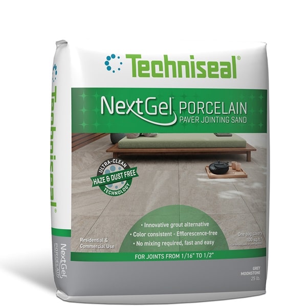 NextGel™ Porcelain Paver Jointing Sand is an innovative alternative to mortar for installing Porcelain Pavers. It is also suitable for granite, marble, travertine and other natural stones. The Ultra-Clean Technology ensures a Haze and Dust-Free environment during installation. NextGel™ Porcelain Paver Jointing Sand is a state-of-the-art mix of graded sand and binder that smoothly flows down joints, allowing for a fast and effective installation of pavers or slabs with false, narrow or wide joints. Its fast-wetting proprietary formula, colour consistency, and efflorescence-free properties make it the best solution for your next porcelain pavers project, available in a convenient 25 lb bag.