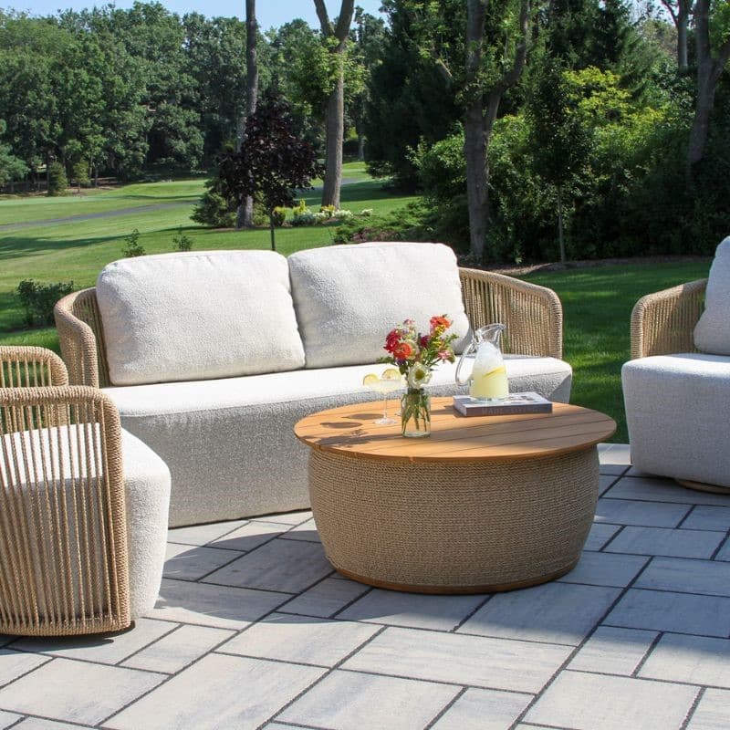The Colette Cable Wicker Loveseat blends sculptural elegance with inviting comfort, making it the perfect centerpiece for your outdoor lounge. Crafted with an airy frame wrapped in handwoven cable wicker, it embodies the approachable yet elevated design of the Colette Collection. Plush high-back Olefin cushions provide long-lasting support and are fade-resistant for durability in every climate. Designed with reticulated quick-dry foam seating, the loveseat allows water to drain and air to circulate, ensuring faster drying and enhanced comfort after rain or poolside use. Arriving fully assembled and paired with protective covers, the Colette Loveseat is ready to enjoy the moment it’s unwrapped, whether styled alone or alongside the matching swivel chairs (GCEXTFRN6010), and coffee table (GCEXTFRN6012).