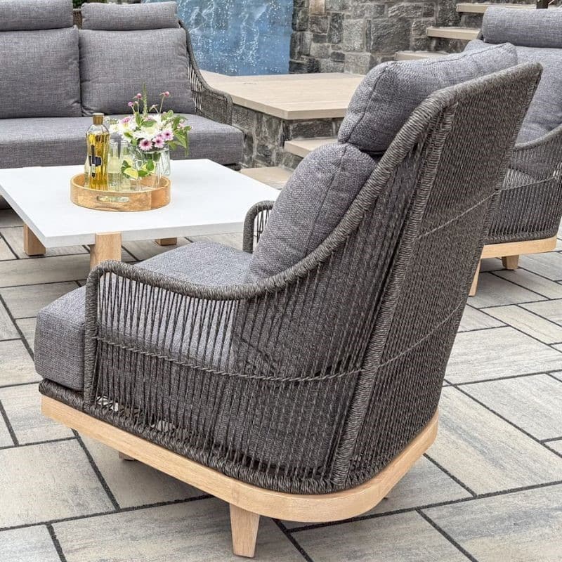 The Magnolia Swivel Chair brings comfort and versatility to your outdoor living space. Handcrafted with HDPE all-weather wicker woven over a frame of antique-washed eucalyptus hardwood, this chair offers both lasting strength and refined texture. The 360° swivel base adds effortless movement, while the high-back Olefin cushion provides supportive comfort for long hours of relaxation.