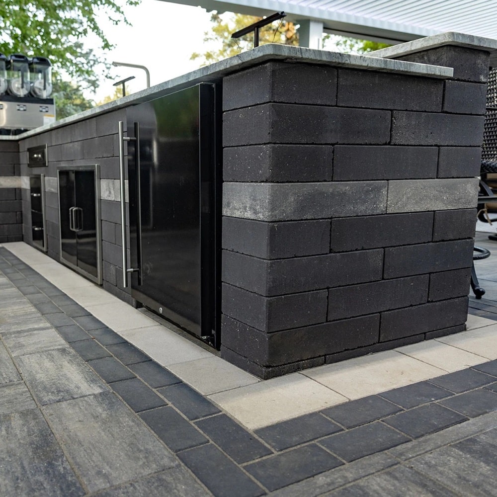 Unity Smooth landscape units dimensional shape make them ideal for constructing custom outdoor living features including fireplaces and kitchens, built-in grills, seat walls, pillars and more.